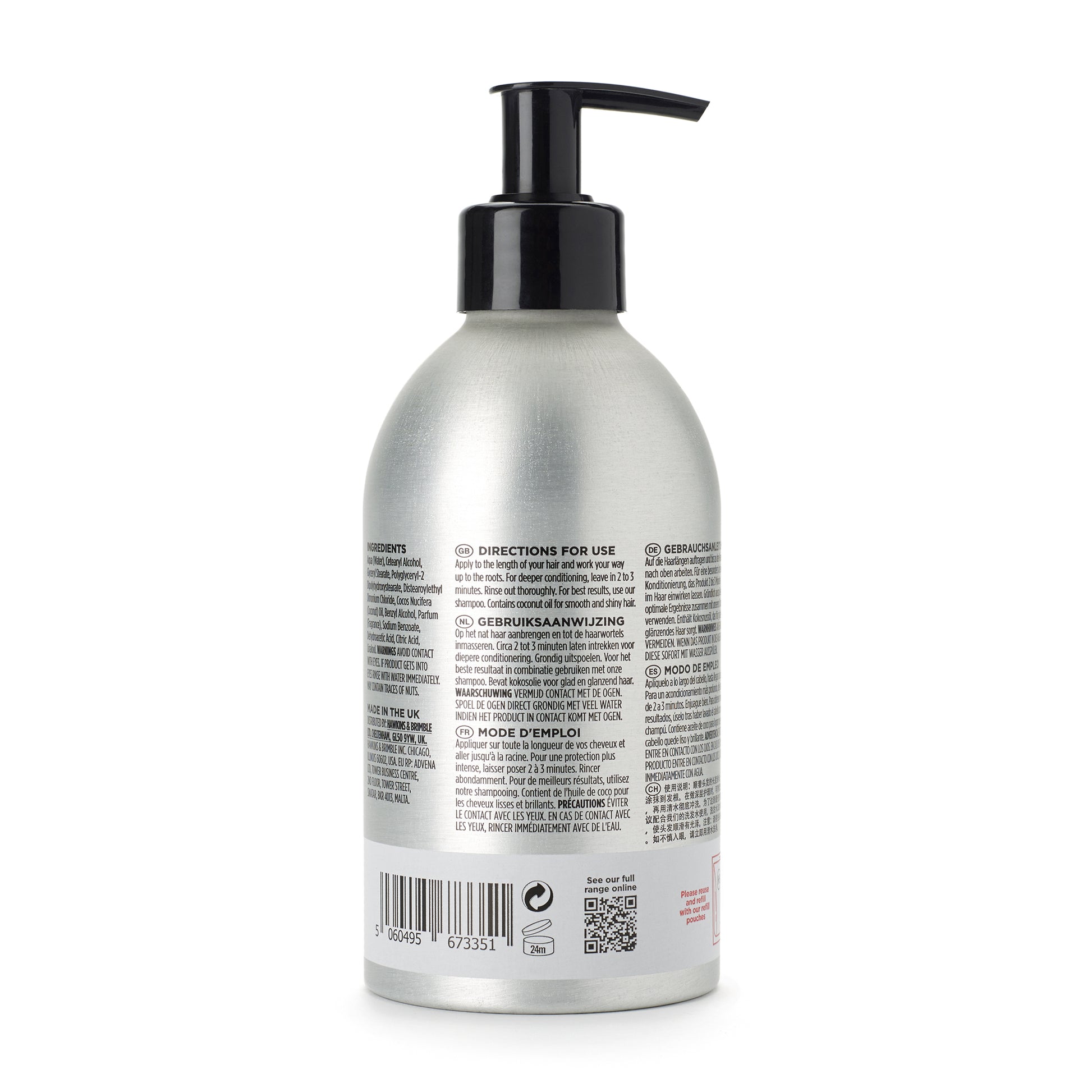 O Condicionador da Hawkins & Brimble foi concebido para criar comprimentos suaves e de aspeto saudável. Consciente do excesso de embalagem, este produto também pode ser enchido de novo.