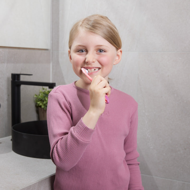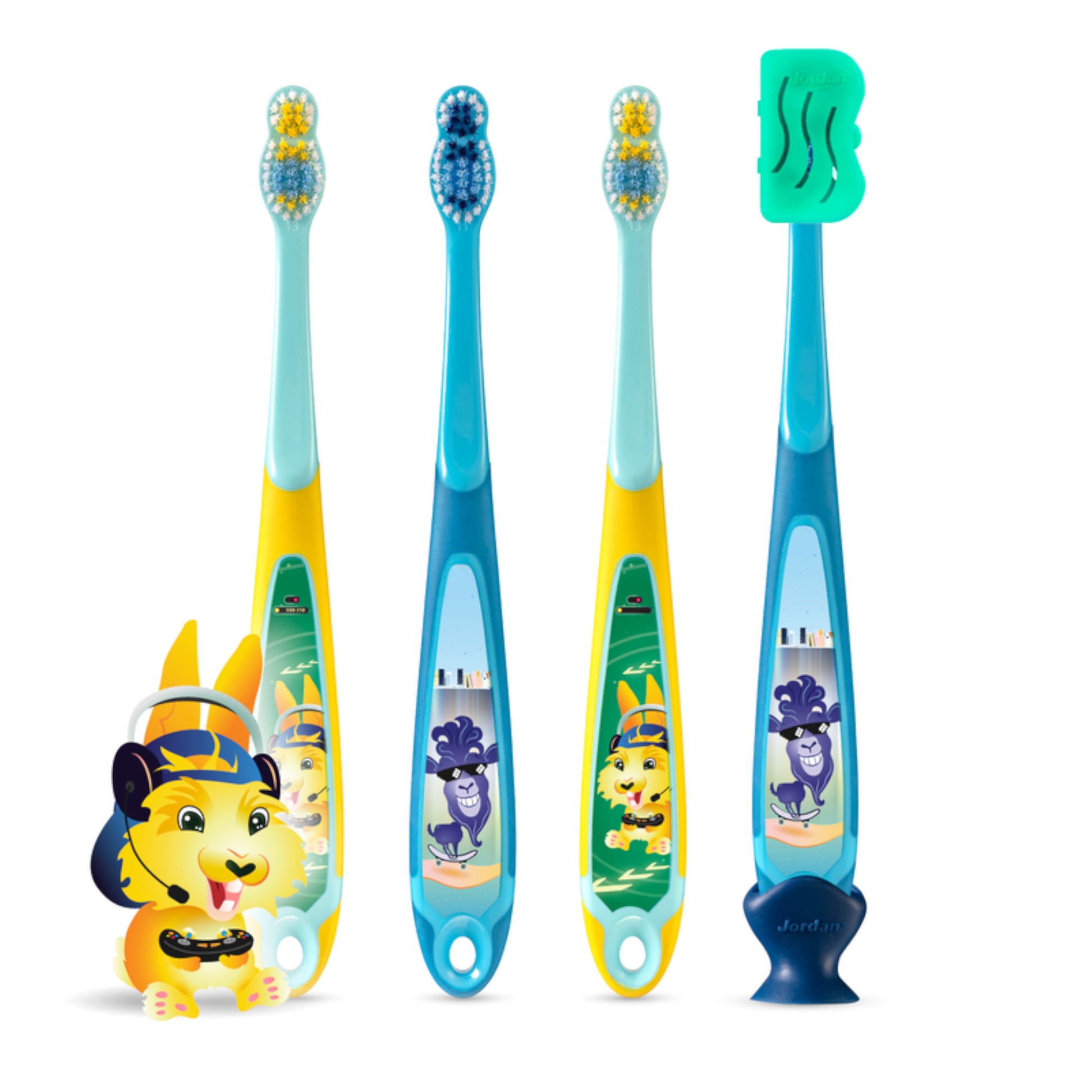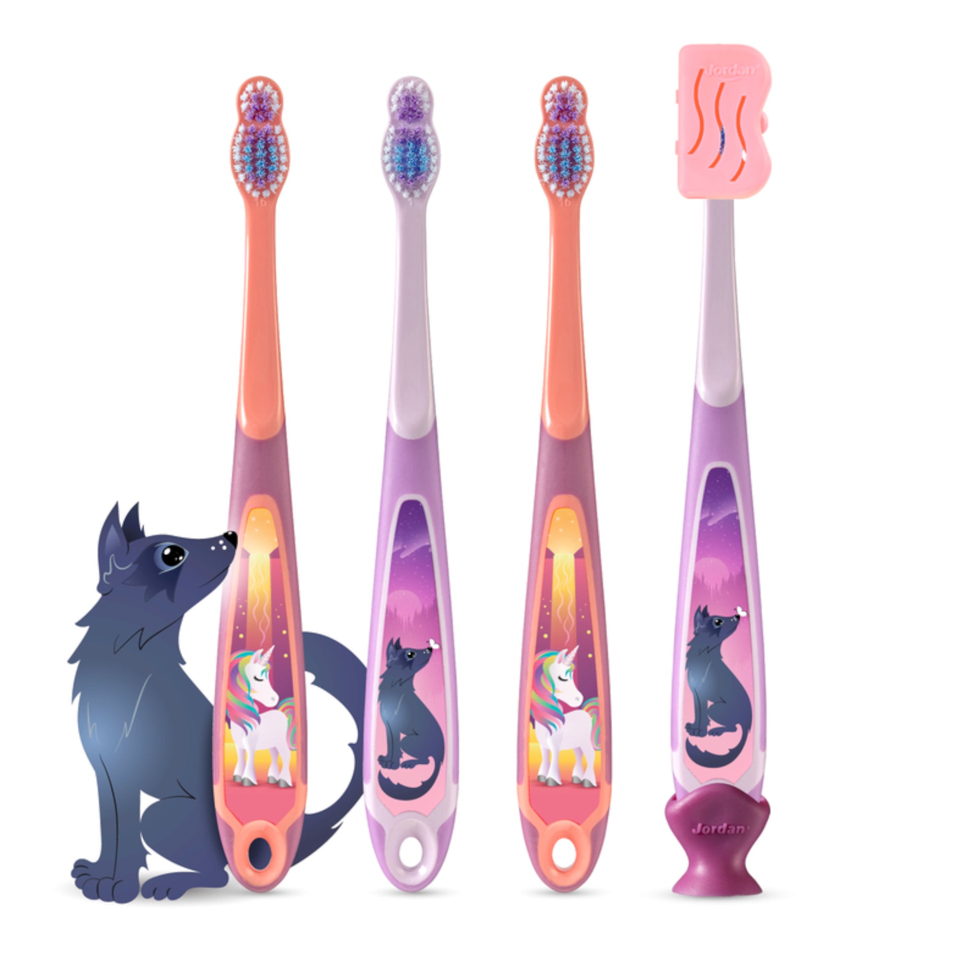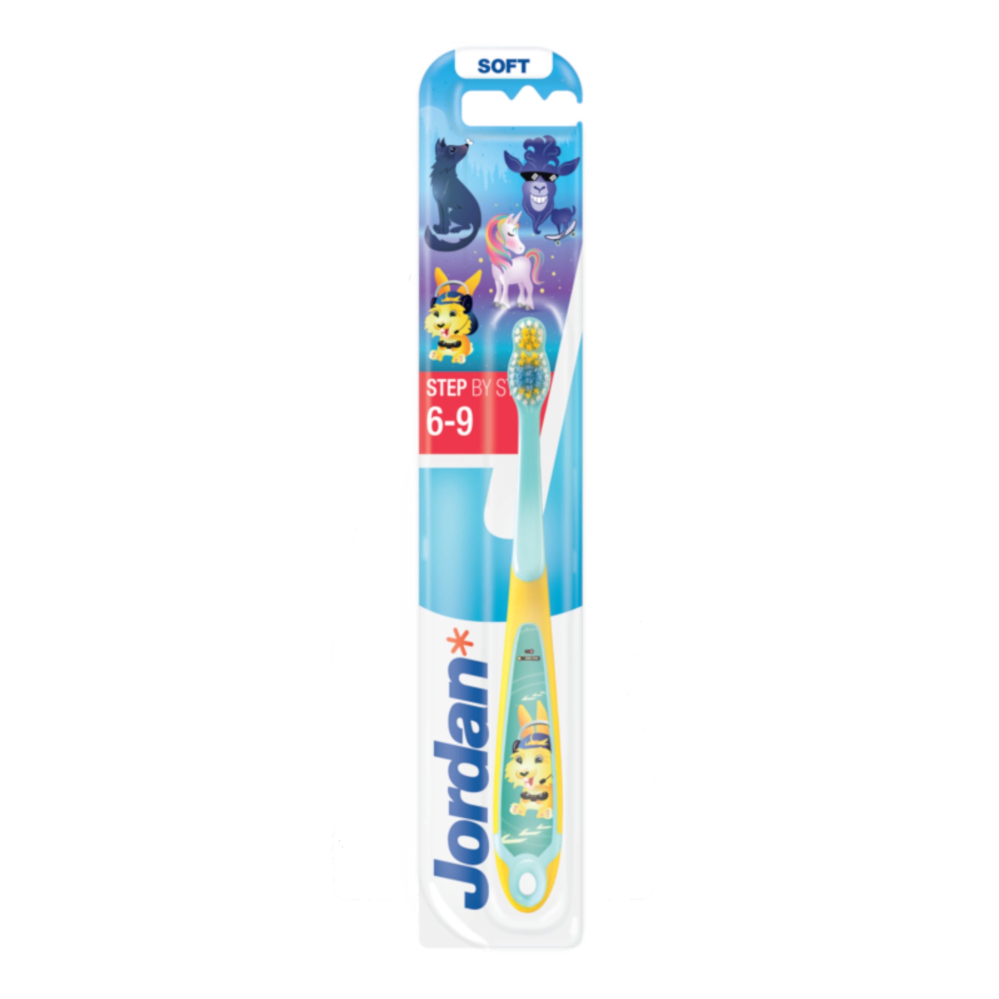 A escova de dentes Step 3 da Jordan foi pensada para escovar uma mistura de dentes de leite e dentes definitivos, nas crianças dos 6 aos 9 anos.
