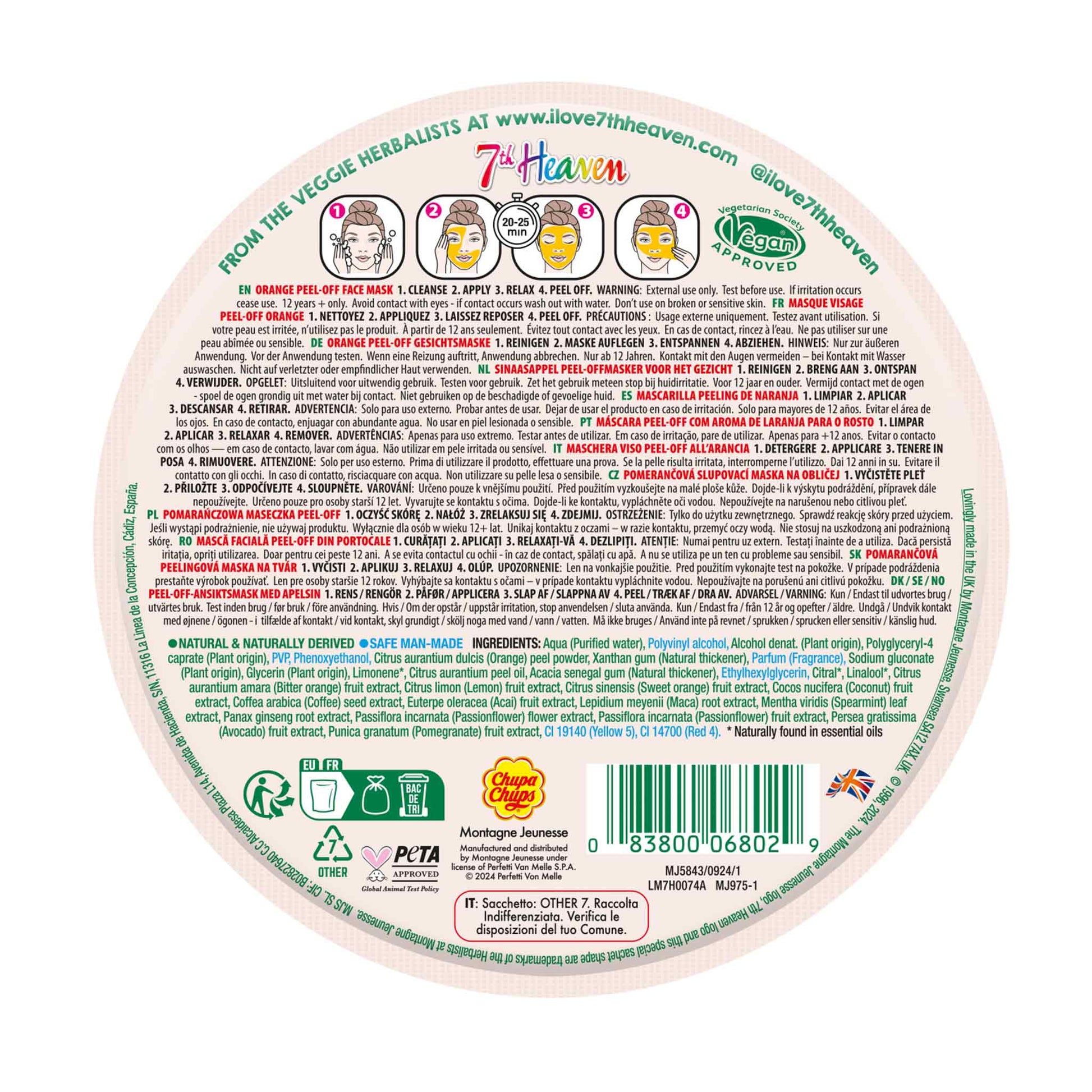Chupa Chups Máscara Facial Peel-Off Laranja – 7th Heaven