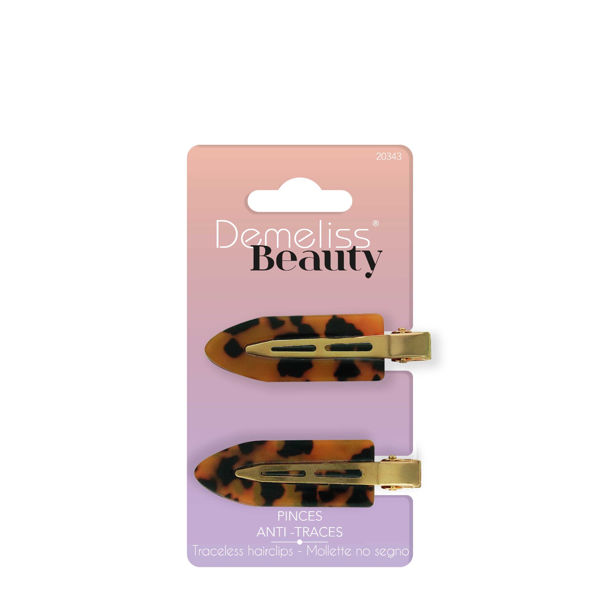 As 2 Pinças Demeliss Beauty são perfeitas para prender o cabelo enquanto cuida da pele ou aplica maquilhagem, sem deixar marcas ou demarcações no cabelo. Desenvolvidas sem dentes, oferecem suavidade e conforto, sendo ideais para qualquer tipo de cabelo. Cor aleatória.