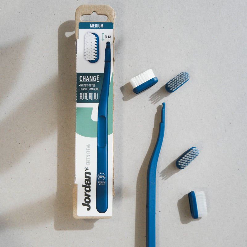 Change Green Clean apresenta um cabo feito de plástico 100% reciclado e cerdas de base biológica. Tem a aparência e o toque da nossa premiada escova de dentes Green Clean, mas agora é ainda melhor para o planeta. Economizando 82% de resíduos plásticos sempre que trocar a cabeça.