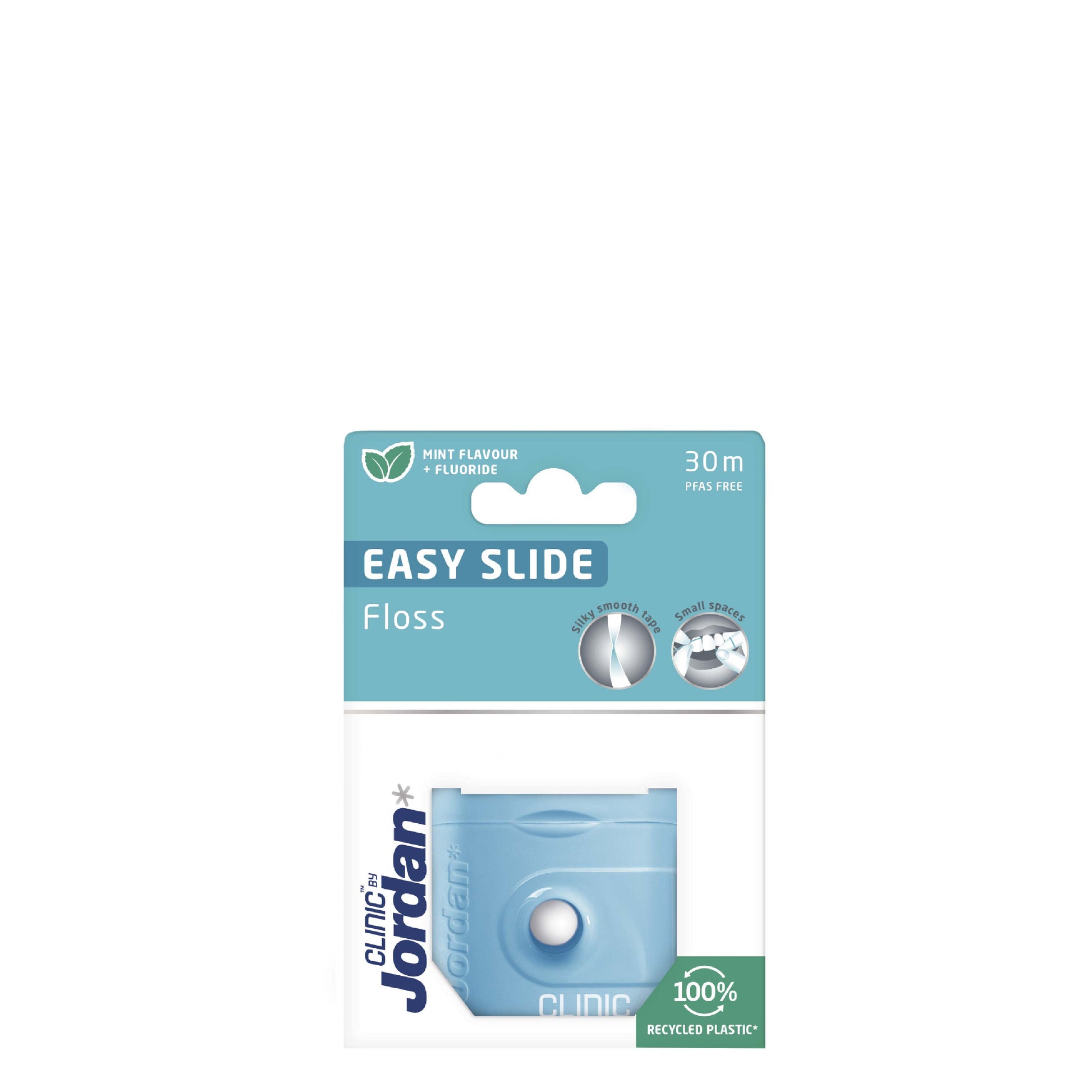 Jordan Easy Slide é um fio dental especialmente indicado para quem possui dentes muito juntos. Ele desliza facilmente entre os dentes, proporciona uma boa aderência e contém pasta de dentes para um hálito fresco e uma sensação imediata de bem-estar.