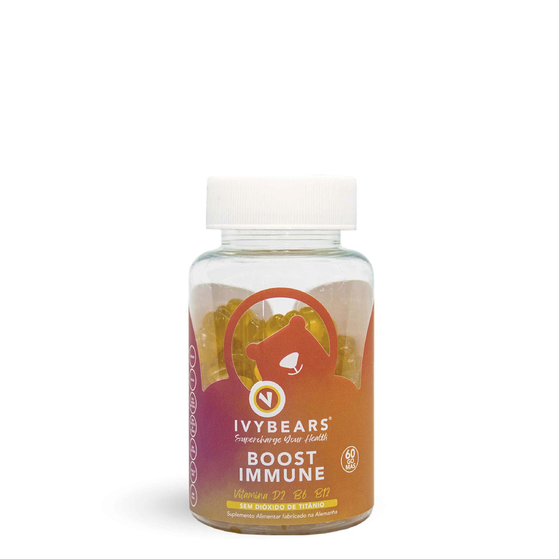 IVYBEARS® Boost Immune contém minerais importantes e 9 vitaminas essenciais, altamente concentradas, orientadas para as necessidades das mulheres. Os ursos vitamínicos ajudam a melhorar a sua força física e a sua saúde. Estes suplementos ajudam naturalmente o seu sistema imunitário e fornecem energia.