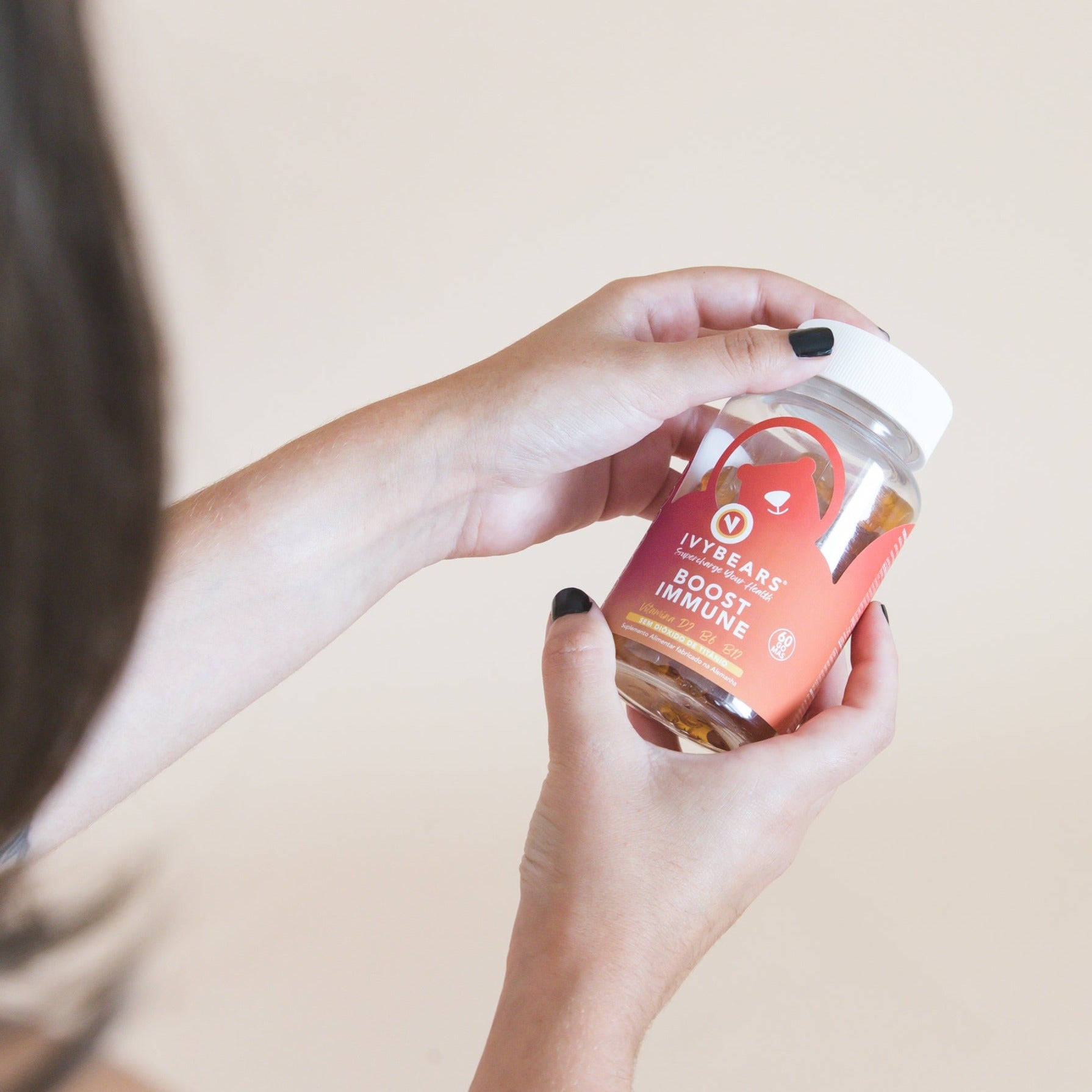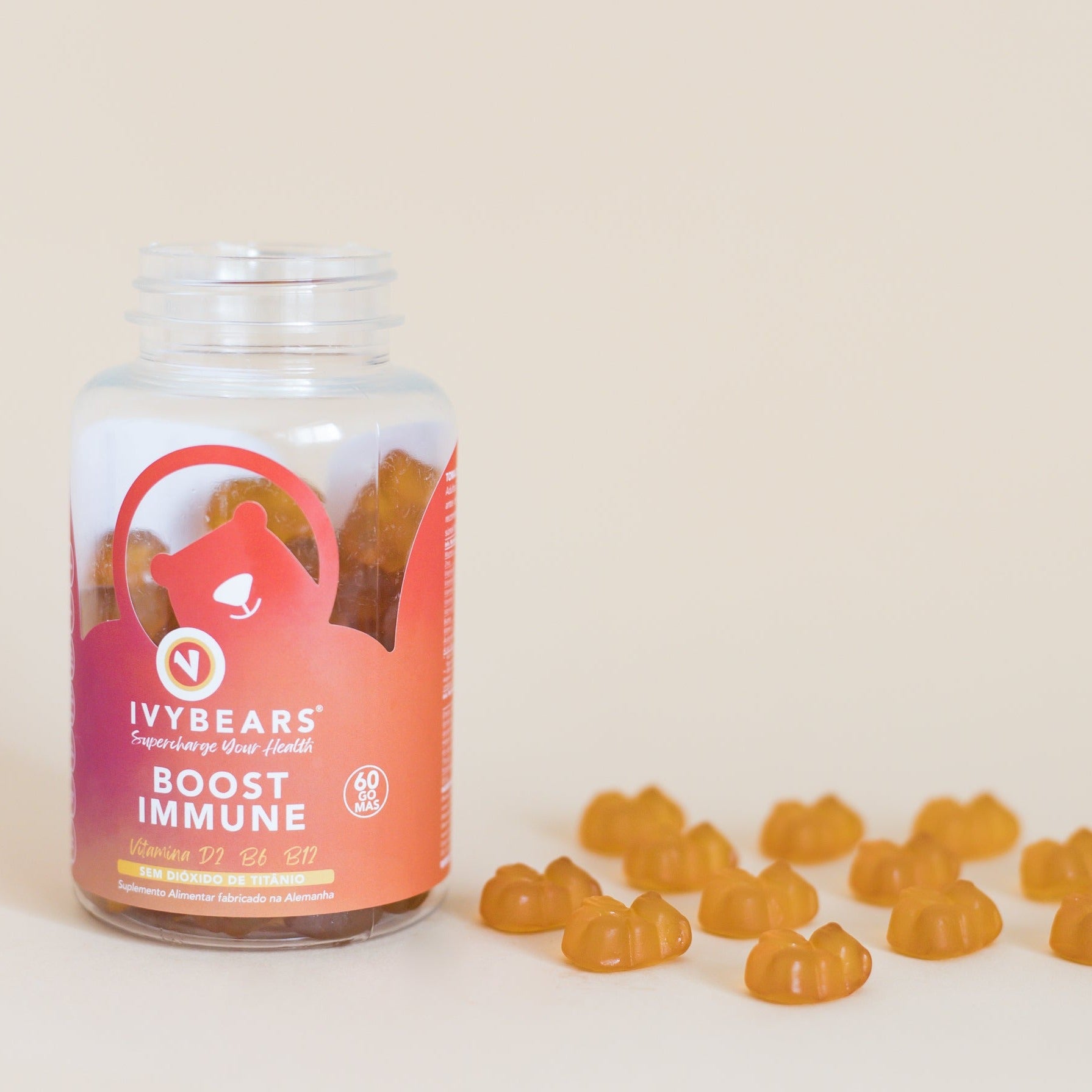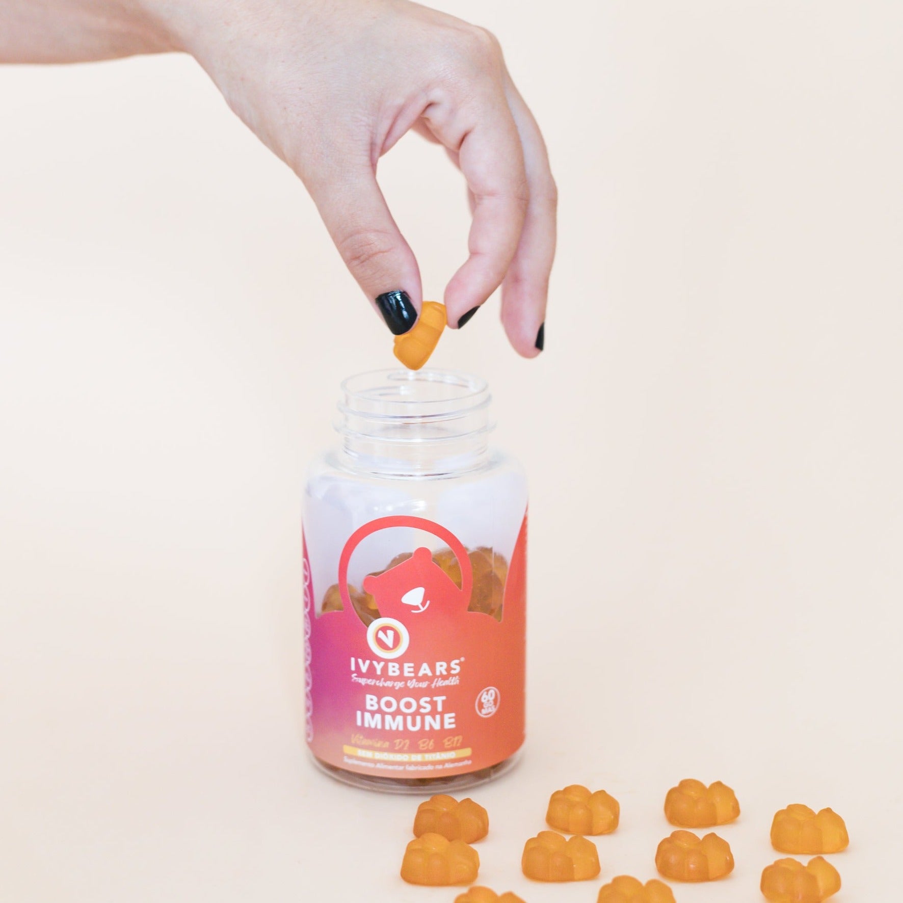 Uma embalagem de IVYBEARS® contém150g/60 unidades, portanto, é suficiente para uma toma mensal.