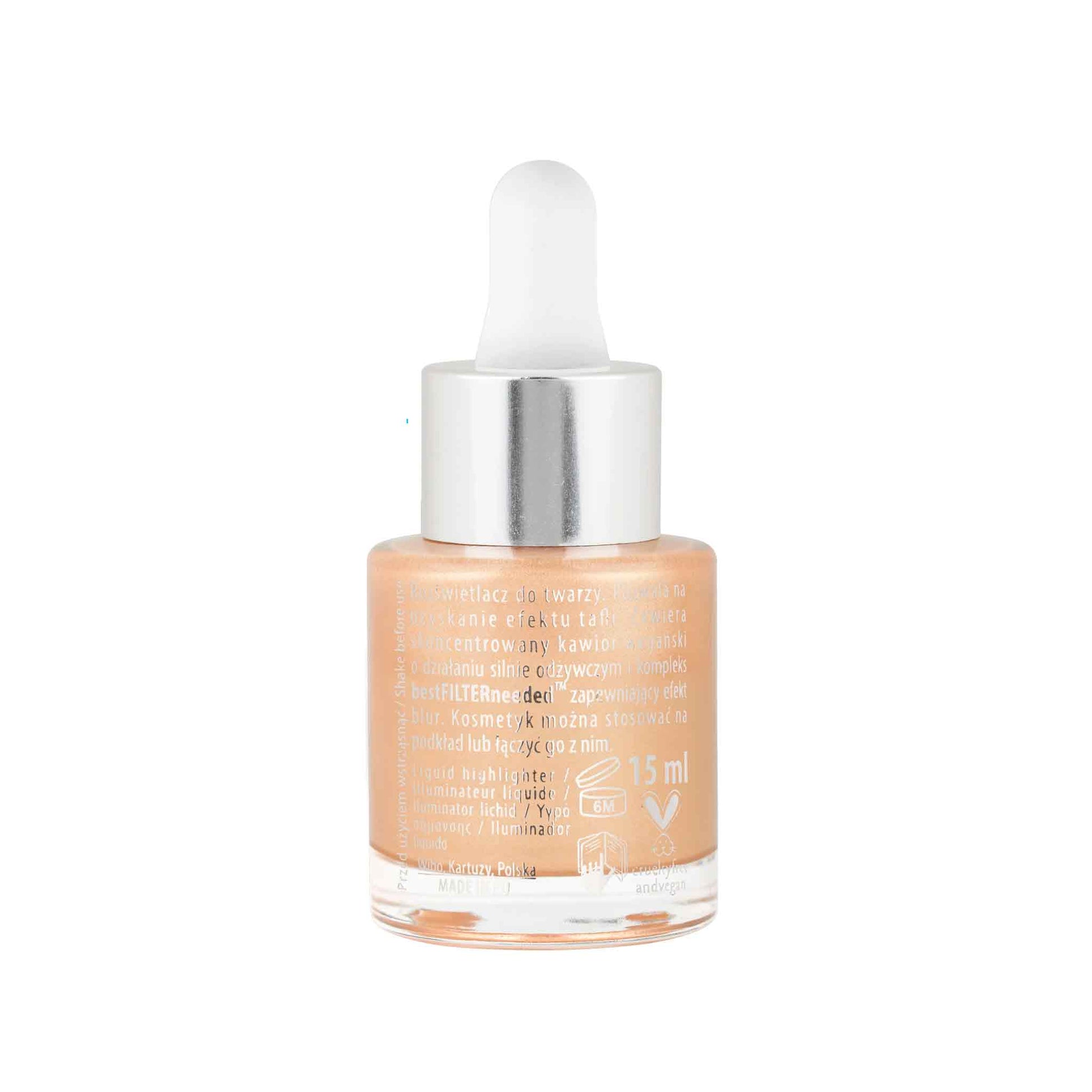 Funde-se na pele sem deixar marcas, sem acumular e sem efeito oleoso. Podes controlar facilmente a intensidade — de um brilho natural a um efeito de pele espelhada.