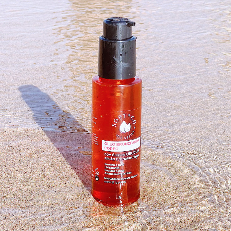 Produzido com óleos de urucum e argão, e com extrato de cenoura rico em carotenos e vitamina E, ligeiramente perfumado com aroma de coco, intensifica o bronze e deixa a sua pele suave.