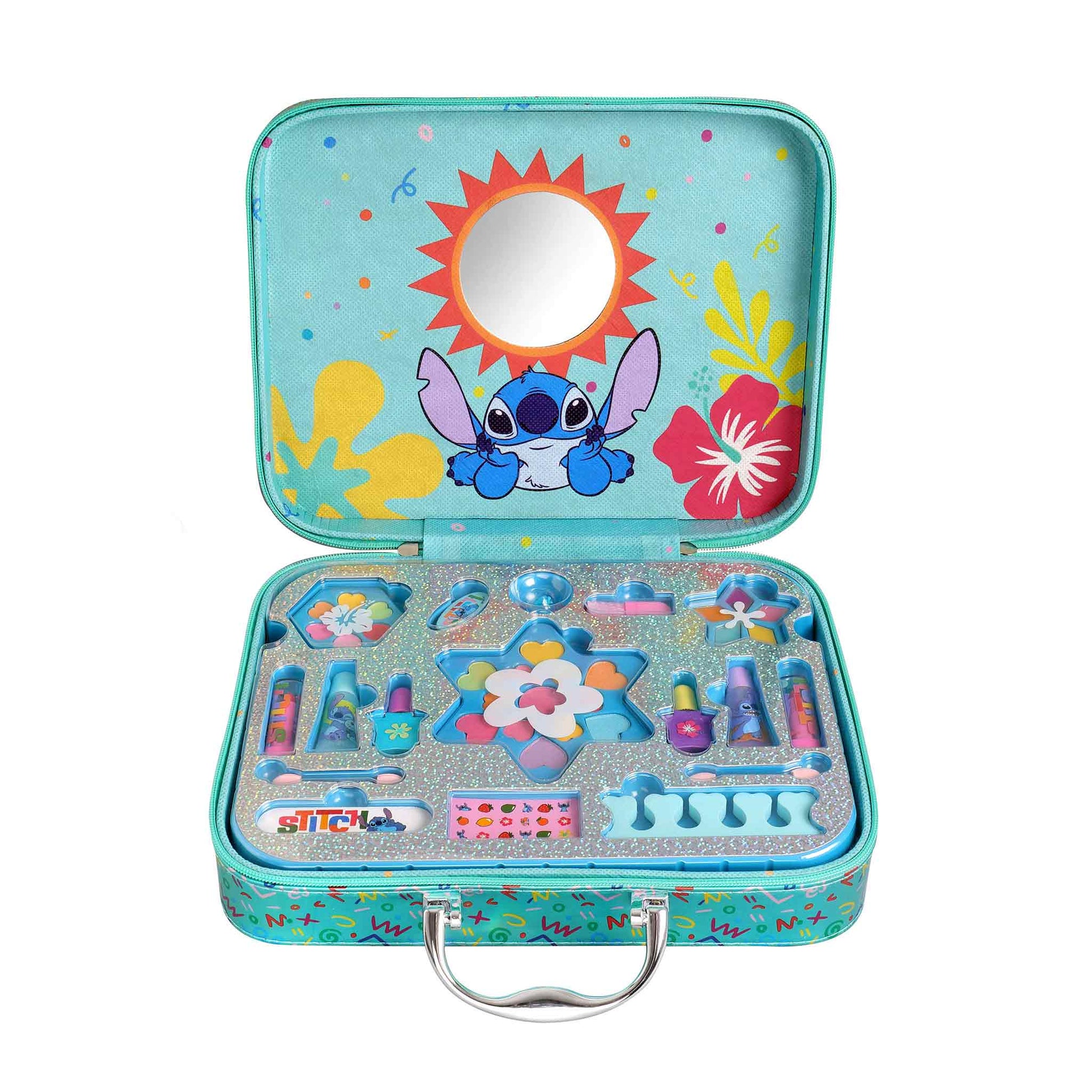 Com cores tropicais e o espírito divertido de Stitch, este estojo triplo é o presente ideal para quem adora brincar, experimentar e criar maquilhagens cheias de energia!